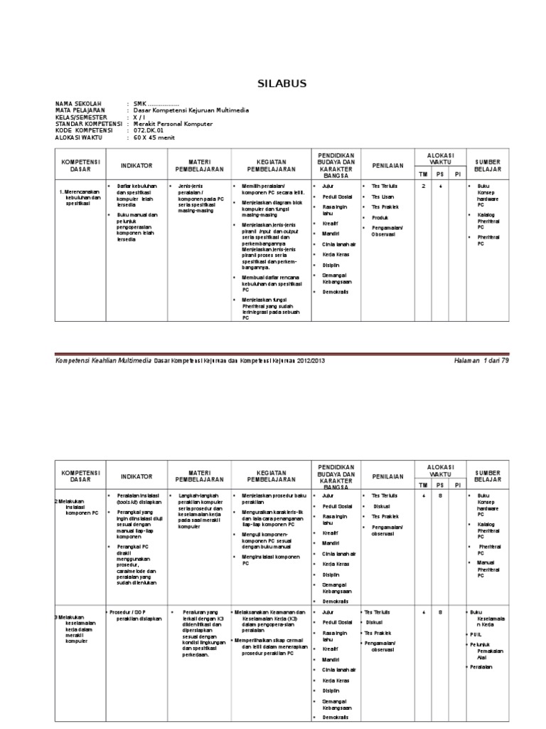 Silabus Animasi 2D Kelas XI docx . Sumber Gambar : id.scribd.com