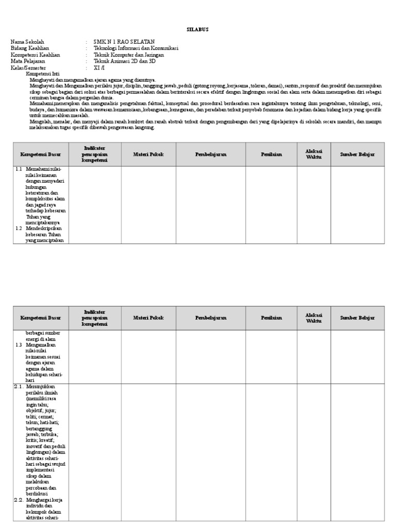 Analisis KI KD Silabus Animasi 2D Dan 3D Semester 2 Rtf . Sumber Gambar : www.scribd.com